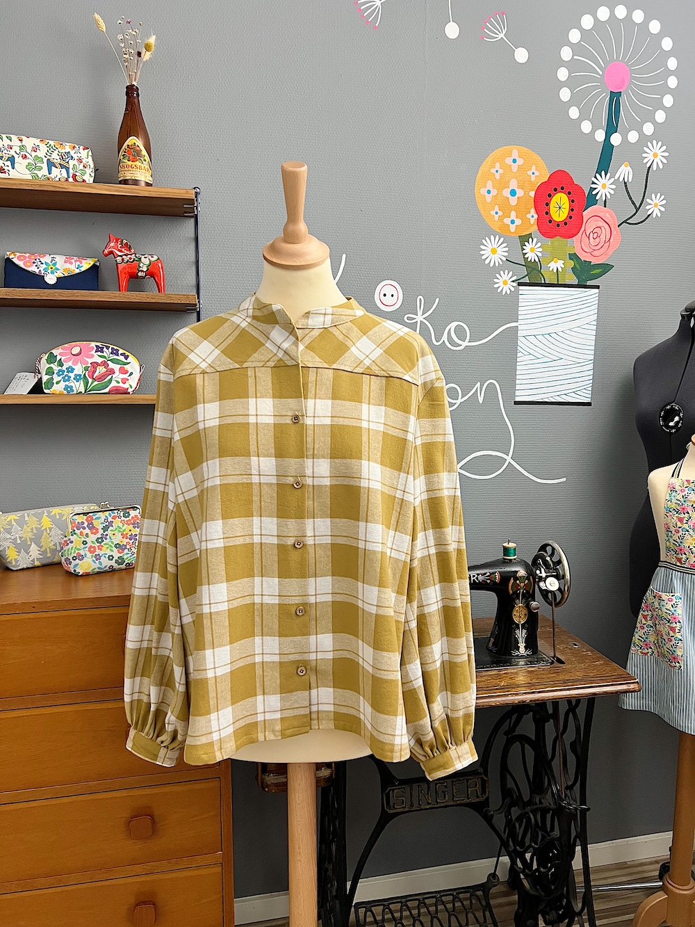 ベーシックなシャツの形をオルソン恵子流にアレンジ。ストレートスリーブ。どんな生地にも合う形です。